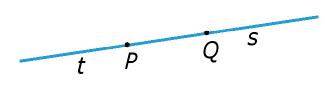 Si marcamos dos puntos, P y Q, sobre una recta, ésta queda dividida en tres partes: las semirrectas s y t, y el segmento PQ. Un segmento es un trozo de recta que queda limitado por dos puntos, en este caso P y Q. Por tanto, un segmento sí tiene principio y fin. A los puntos P y Q se les llama extremos del segmento.