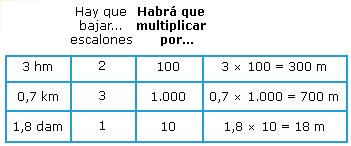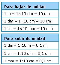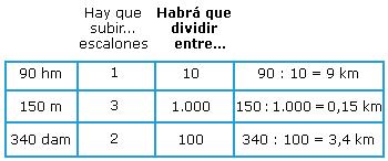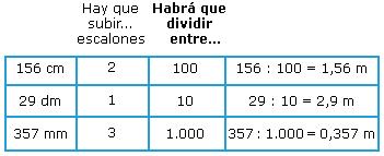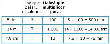 Para bajar un escalón hay que multiplicar por 10 la unidad que está en el escalón superior. En cambio para subirlo hay que dividir entre 10 la unidad del escalón inferior.