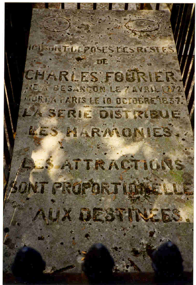 Below is my August 1990 photograph of Charles Fourier's grave marker, 37 avenue Samson, Cimetičre de Montmartre, Paris: