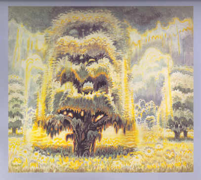 ". . . Burchfield's trees are beings, presences, silent and majestic cohabitants of the earth with the lion and the robin. They are alive in a different way, secretly in public view. He has painted them under their nourishing clouds, in a fertile meadow, just outside a town. . . .