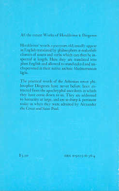 Herakleitos & Diogenes. Translated from the Greek, by Guy Davenport. Bolinas, CA: Grey Fox Press, 1979. (Grey Fox Press Books) paperbound edition.