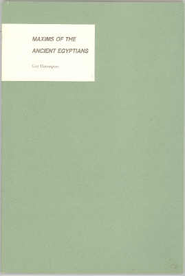 Maxims of the Ancient Egyptians. Translated from the Hieroglyphs by Boris de Rachewiltz and from his Italian by Guy Davenport. Louisville, KY: The Pace Trust, 1983. Paperbound edition.