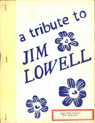 [Untitled Essay] in Tom Kryss, ed., A Tribute to Jim Lowell, (Cleveland, OH: Ghost Press, 1967), leaf 38 of 54 leaves. "500 copies June 1967" Back to Parts of Books (All)