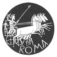Charioteer driving a team of four horses / the word ' R O M A' p.