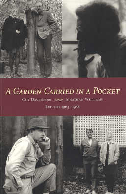 "Note" in Thomas Meyer, ed., A Garden Carried In A Pocket: Guy Davenport [and] Jonathan Williams; Letters 1964--1968. Haverford, PA: Green Shade [and] James S. Jaffe Rare Books, 2004, pp. 9-10. Book has 137 pp. followed by 4 pp. of drawings. Includes photos of GD and JW. Colophon: