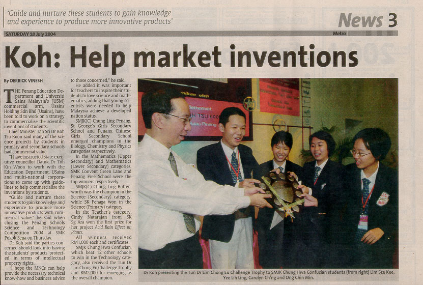 “2004年全槟中小学科学及工艺竞赛“总冠军