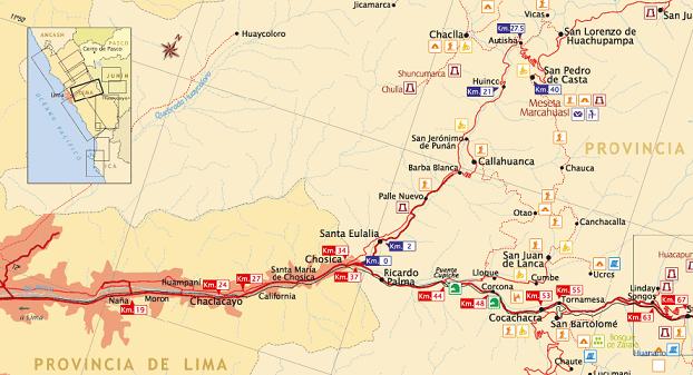 Canchacalla. Ubicacion: 60 km al este de Lima Duración: Todo el día. Nivel 3. Abril a Noviembre Distancia total aproximada: 65 km Rango de altitud: 851 – 2800 msnm Viaje en bici por el valle medio del río Rímac. Empieza en Chosica, el inicio es un corto tramo por la carretera central y el resto por camino de trocha afirmada hasta Canchacalla, pasando por Cumbe, pueblo productor de las mejores frutas de la zona: paltas, chirimoyas, pacaes, nísperos, etc. Sol, aire puro, naturaleza, relax, paisajes, comida típica, río, buen clima, libertad. De Lima a Chosica ida y vuelta en vehículo privado. 1 day tours Canchacalla. Location: 60 km east of Lima Duration:Full day. Level 3. April to November Approximate total distance: 65km Altitude range: 851 – 2800 masl Nice bike ride by the mid Rímac river valley. Start at Chosica, the begining is a short section by the Central Highway, the rest by a trail leading to Canchacalla, passing by Cumbe a pretty town well know for the best fruits of thr region: paltas, chirimoyas, pacaes, nísperos, etc. Sun, pure air, nature, relax, landscapes, local cuisine dishes, river, good climate, freedom. From Lima to Chosica, round trip by car. |