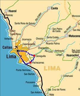 Cieneguilla - Pachacamac Ubicacion: sur de Lima Duración: 8 horas. Nivel: 1. Todo el año. Distancia total aproximada: 55 km. Rango de altitud: Nivel del mar Desde Cieneguilla hacemos el recorrido en bicicleta por el valle de Lurín en descenso entre las huertas y cultivos y visitando los sitios arquelógicos de Tambo Viejo, Tambo Inca y Cardal terminando en el Templo y Museo de Sitio de Pachacamac. Descanso en un restaurant campestre (almuerzo opcional). De Lima a Cieneguilla y de Pachacamac a Lima en vehículo privado. Traslados ida y vuelta desde su hotel en Lima Sol, aire puro, naturaleza, relax, paisajes, comida típica, río, buen clima, historia, libertad. 1 day tour Cieneguilla - Pachacamac Location: sout of Lima Duration: 8 hours Level: 1 All year round Approximate total distance: 75 km. Altitude range: Sea level Start cycling from Cieneguilla following the road along the Lurin valley. On the way visit some of the archaeological sites: Tambo Viejo, Tambo Inca and Cardal. The tour ends at Pachacamac Temple and Site Nuseun. Break at a restaurant in the countryside (lunch optional). From Lima to Cieneguilla and from Pachacamac to Lima with private vehicle. Local transfers round trip from your hotel in Lima. Sun, pure air, nature, rlax, landscape, local cuisine, river, good climate, history, etc. |