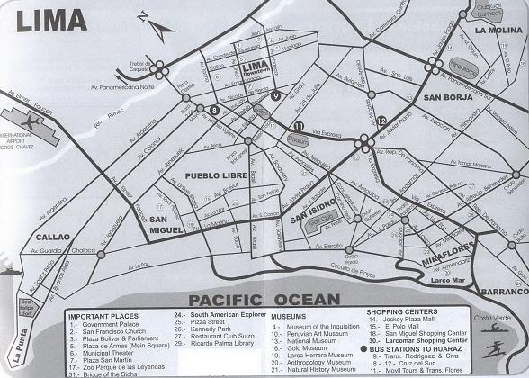 Lima city bike tour Ubicacion: ciudad de Lima 5 horas. Nivel 1. Todo el año Distancia total aproximada: 30 km. Una experiencia nueva e interesante para recorrer la ciudad muy de cerca por sus calles y avenidas. Visitamos el Centro Histórico, la zona tradicional, residencial y elegante de Santa Beatriz, el Parque de la Exposición, la Plaza San Martín, la Plaza Mayor, la Catedral de Lima y el Monasterio de San Francisco, el recorrido sigue por las zonas residenciales de San Isidro, Miraflores y sus modernos Centros Comerciales. Haremos paradas de descanso para tomar refrescos o comer algo en restaurantes y comercios con servicios de calidad. El paseo se hace por vías seguras de poco tráfico vehicular y por las principales ciclovías de la ciudad. Recogemos a los pasajeros de sus hoteles. El tour empieza en nuestro local y termina en sus hoteles. 1 day tours Lima city bike tour Location: Lima city 5 hours. Level 1. All year round. Approximate total distance: 30 km A new and interesting experience for a city close up visit through the streets, avenues, parks, boulevards and bike paths Bike ride to visit the Historic Center (downtown), the traditional and elegant neighbourhood of Santa Beatriz, the Parque de la Exposición, the Plaza San Martín, the Main Plaza, the Cathedral of Lima and San Francisco monastery, continue by the nice residential areas of San Isidro, Miraflores and the modern malls in the city. We will make few stops on the way for snacks and soft drinks in selected sites. The ride is made by safe low traffic streets and bike paths. We will pick you up from your hotel. The tour starts from our place and ends at your hotel. |