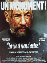 >> Xoves, 22 de marzo de 2001 20,30 e 23 h. Salón de Actos da Casa da Cultura (Biblioteca Pública, rúa Concello 11) LA VIDA Y NADA MÁS La vie et rien dautre. Fracia, 1989. Cor, 135 min. Dirección: Bertrand Tavernier Guión: Jean Cosmos, Bertrand Tavernier Producción: Frédéric Bourboulon, René Cleitman, Albert Prévost (AB Films, Centre national de la cinématographie CNC, Films A2, Hachette Première, Investimage, Little Bear, Sofica Sofinergie) Música: Oswald dAndrea Fotografía: Bruno de Keyzer Montaxe: Armand Psenny Intérpretes: Philippe Noiret (Maior Delaplane), Sabine Azéma (Irène de Courtil), Pascale Vignal (Alice), Maurice Barrier (Mercadot), François Perrot (Perrin), Jean-Pol Dubois (André), Daniel Russo (Tenente Trevise), Michel Duchaussoy (Xeneral Villerieux), Arlette Gilbert (Valentine), Louis Lyonnet (Valentin), Charlotte Maury-Sentier (Cora Mabel), François Caron (Julien), Thierry Giménez (Axudante do enxeñeiro), Frédérique Meininger (Madame Lebegue), Pierre Trabaud (Eugene Dilatoire), Jean-Roger Milo (Sr. Lebegue), Cathérine Verlor (monxa na praia), Jean-Christophe Lebert (o amnésico), Bruno Thérasse (Rougeaud), Philippe Lohan (o home sen perna), Marion Loran (Solange de Boisancourt), Charlotte Kady (monxa no hospital), Gabriel Cattand (Profesor Mortier), Christophe Odent (Polieau), Christian Magnan (Catreux), Jean Champion (Lagrange), Phillippe Deplanche (Lecordier), Michel Cassagne (Abel) Versión orixinal con subtítulos en castelán. Premios Bafta: Mellor película de fala non inglesa, 1990 Premios César: Mellor actor (Philippe Noiret), Mellor música, 1990 Premios David de Donatello: Mellor actor estranxeiro (Philippe Noiret), 1990 Premios Europeos do Cinema: Mellor actor (Philippe Noiret), Premio especial do xurado, 1989 Premios As. Críticos de Los Angeles: Mellor película estranxeira, 1990 Festival de cinema de Tokio: mellor contribución artística, 1989 Sitio oficial en francés (necesita Flash): www.hachettepremiere.com/lavie Xaneiro de 1920. 350.000 soldados franceses están desaparecidos en combate. O Maior Dellaplane vai localizando incansablemente aos mortos e feridos coas descricións dos familiares. Guíano o honor e a ética; odia a idea do «soldado descoñecido». Dentro do seu sector, en busca do seu marido, aparece Madame Irène de Courtil, dama parisiense altiva e politicamente ben relacionada. O encontro entre ambos é brusco, pero os seus camiños acaban cruzándose. Despois de atopar unha conexión sorprendente entre o seu marido desaparecido e un mestre da localidade, Irène fai una oferta a Dellaplane. La vie et rien dautre é un drama antibelicista, irónico e romántico do afamado director de Hoy empieza todo e Capitán Conan.