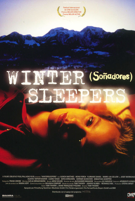 de 2001 20,30 e 23 h. Salón de Actos da Casa da Cultura (Biblioteca Pública, rúa Concello 11) WINTER SLEEPERS (Soñadores) Winterschläfer. Alemaña, 1997. Cor, 125 min, scope Dirección: Tom Tykwer Guión: Tom Tykwer, Anne-Françoise Pyszora (segundo a súa novela Expense of Spirit) Producción: Stefan Arndt, Maria Köpf (X-Filme Creative Pool, Palladio Film, co apoio de WDR, Arte, MDR) Música: Reinhold Heil, Johnny Klimek, Tom Tykwer Dirección de Fotografía: Frank Griebe Montaxe: Katja Dringenberg Intérpretes: Ulrich Matthes (Rene), Marie-Lou Sellem (Laura), Floriane Daniel (Rebecca), Heino Ferch (Marco), Josef Bierbichler (Theo), Laura Maori Tonke (Nina), Sophia Dirscherl (Marita), Sebastian Schipper (Otto), Saskia Vester (Anna), Werner Schnitzer (Senior Consultant), Renee Schoenberg (Gerd), Simon Donatz (Peter), Jacob Donatz (Luis), Agathe Taffertshofer (Edith), Robert Meyer (Keibl), Harry Täschner (Kuhn) Versión orixinal con subtítulos en castelán. Gijón 1997: Mellor director, Mellor director artístico