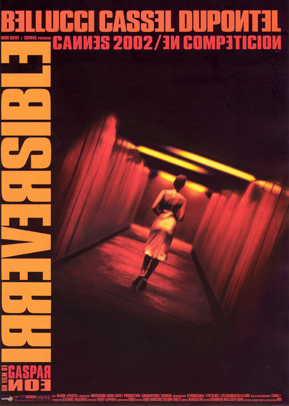 20,30 e 23 h. ESTREA EN OURENSE Salón de Actos da Biblioteca Pública (rúa Concello 11) IRREVERSIBLE Irréversible. Francia, 2002. Cor, 99 min. Scope Director: Gaspar Noé Producción: Christophe Rossignon, Richard Grandpierre (Nord-Ouest Productions, Eskward, en coproducción con StudioCanal, Les Cinémas de la Zone) Guión: Gaspar Noé Fotografía: Benoît Debie Música: Thomas Bangalter Montaxe: Gaspar Noé Intérpretes: Monica Bellucci, Vincent Cassel, Albert Dupontel, Philippe Nahon, Jo Prestia Data de estrea en España: 11-10-2002 Versión orixinal con subtítulos en castelán. Cannes 2002: Selección oficial Sundance 2002: Selección oficial Toronto 2002: Selección oficial Estocolmo 2002: Mellor película Sitio oficial (francés): www.marsfilms.com/site/irreversible A vinganza é irreversible, o mesmo que a ferida que a provoca. Marcus percorre enlouquecido as rúas de París, acompañado do seu amigo Pierre, para vingar a brutal violación da súa moza Alex. Mais a violencia, cando se desborda, leva consigo tráxicas consecuencias. Polémica e controvertida película tan aplaudida por uns como criticada por outros, e proposta innovadora que non deixa indiferente a ninguén.