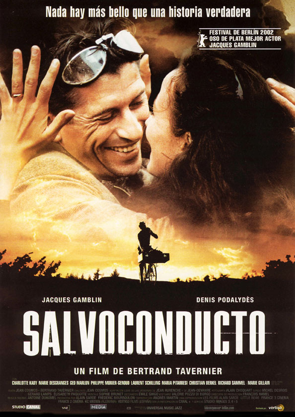 DOUS LUGARES DE PROXECCIÓN Mércores 2 de abril de 2003. Salón de Actos Biblioteca Pública, 20.30 h. (sesión única) Xoves 3 de abril de 2003. Teatro Principal, 20.30 h. (sesión única) Coa colaboración do Vicerrectorado de Extensión Universitaria da Universidade de Vigo ESTREA EN OURENSE SALVOCONDUCTO Laissez-Passer. Francia-España-Alemaña, 2001. Cor, 170 min. Director: Bertrand Tavernier Producción: Alain Sarde, Frédéric Bourboulon (Little Bear, Les Films Alain Sarde, France 3 Cinéma, France 2 Cinéma, Vértigo Films, KC Medien AG) Guión: Bertrand Tavernier, Jean Cosmos, a partir do libro de Jean-Devaivre Fotografía: Alain Choquart Montaje: Sophie Brunet Música: Antoine Duhamel Intérpretes: Jacques Gamblin, Denis Podalydès, Charlotte Kady, Marie Desgranges, Maria Pitarresi, Marie Gillain Data de estrea en España: 27-09-2002 Versión orixinal con subtítulos en castelán. Web oficial: www.laissezpasser-lefilm.com