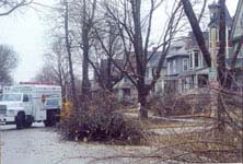 The village pruning specifications to remove limbs below 14 feet from ground level. The village is pruning more so that the contractors will not have to return in a long time. "The whole rationale is that they haven't been pruned in a long time, so they must do a severe job," said Karen Heller, who works at Carol JH Yetken, Landscape Architects. "That's like saying I haven't had a haircut in a long time so I'm going to get a crew cut." A&B is encountering angry and protesting residents as they proceed down the blocks. On March 19, worked rolled their trucks up to some of the oldest trees in the village, on the 100 and 200 blocks of South Euclid, hoping to trim branches. |
