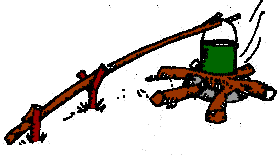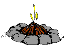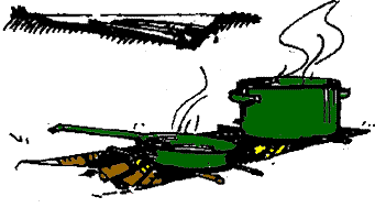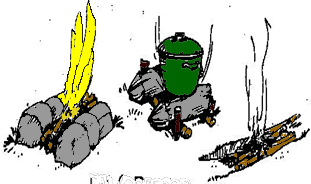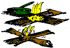 Preparación: realizaremos un reflector con troncos verdes apilados o piedras apiladas orientadas del lado opuesto al que viene el viento, esto nos sirve por que el mismo viento se encargará de avivar el fuego, y para el fuego utilizaremos una media pirámide apoyada contra el reflector. Encendido: introduciremos un fósforo en la boca orientada al viento. Función: Su función principal es dar calor, no es muy conveniente para cocinar, pero si fuere necesario colgaremos la marmita para que la llama le de pareja en el fondo de la marmita. Sirve para realizar pan, ya que se obtiene una distribución pareja del calor. |