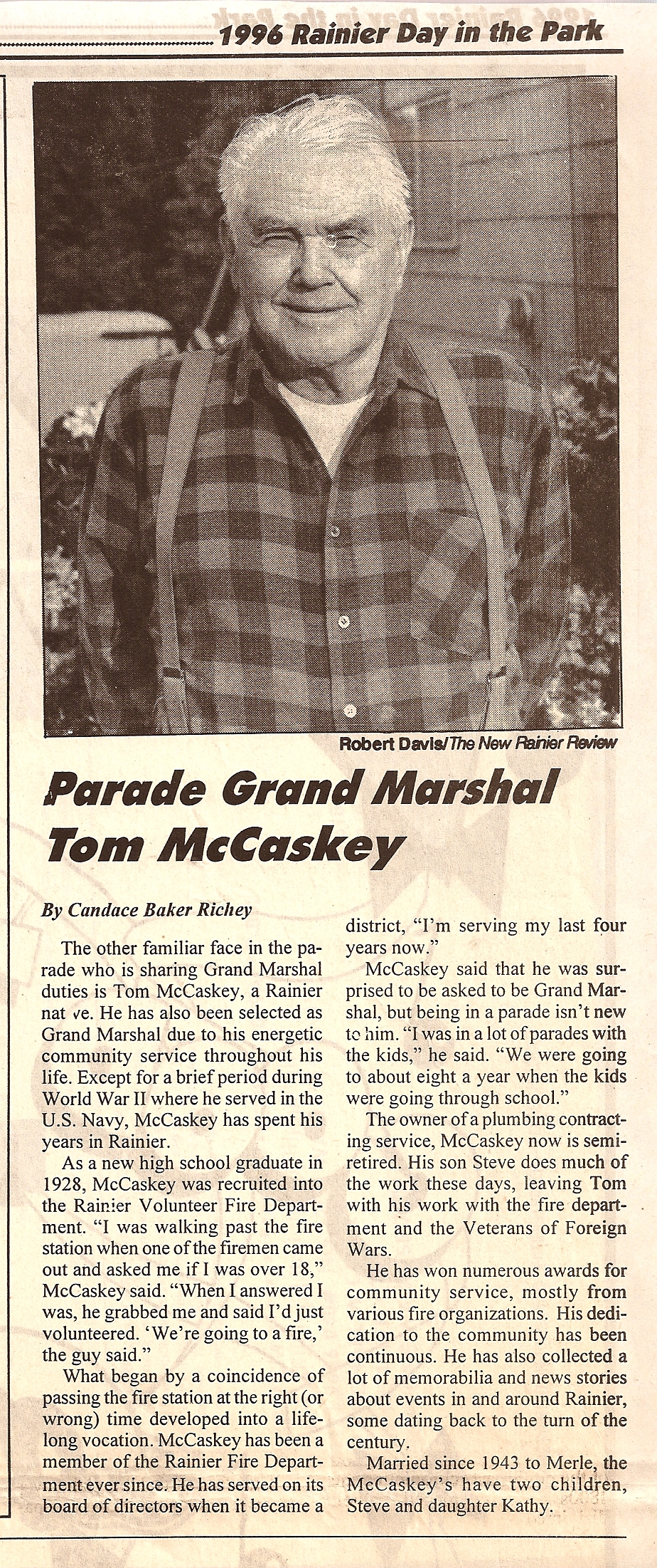 Tom McCaskey, along with Eleanor Abraham were Parade Grand Marshals. |