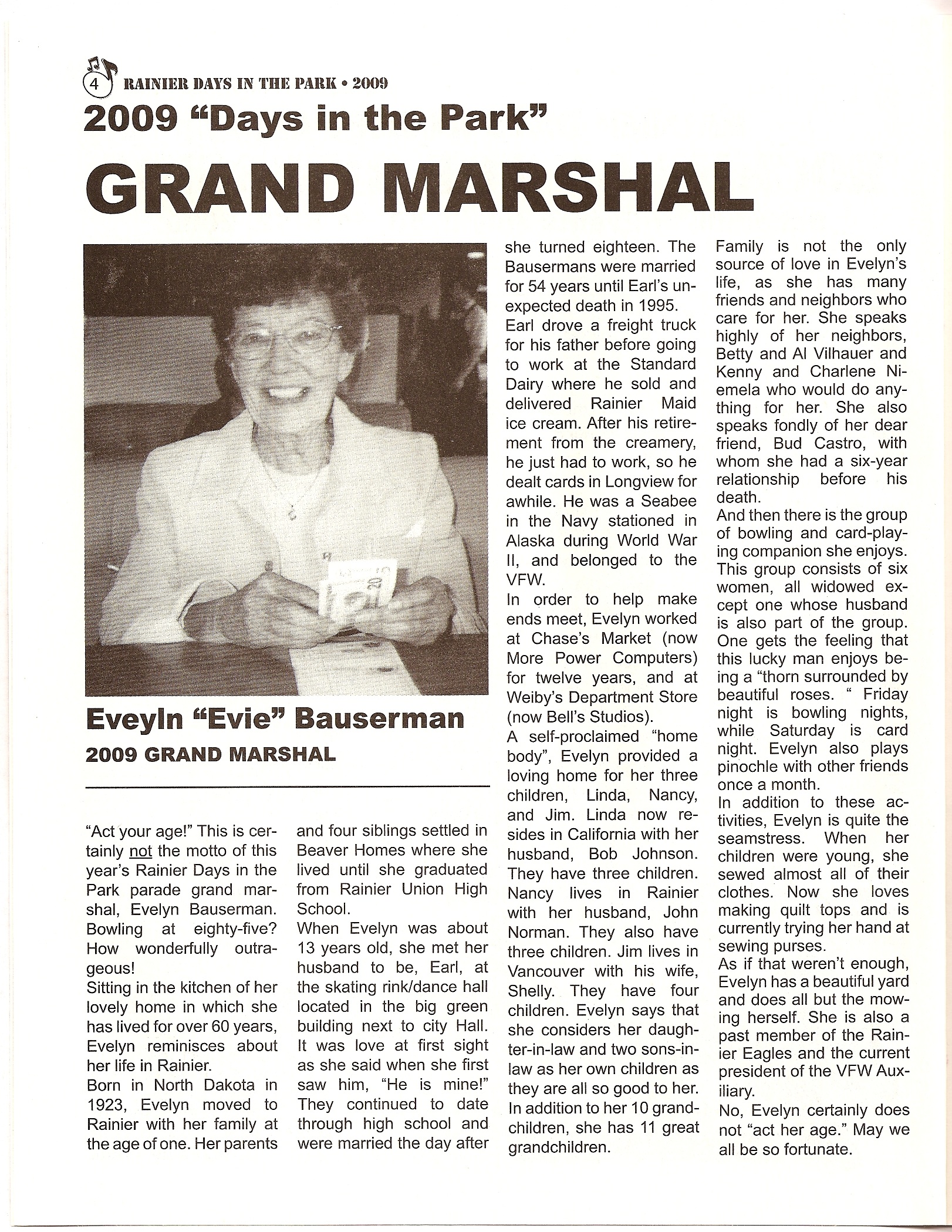 Grand Marshal Eveyln "Evie" Bauserman. |