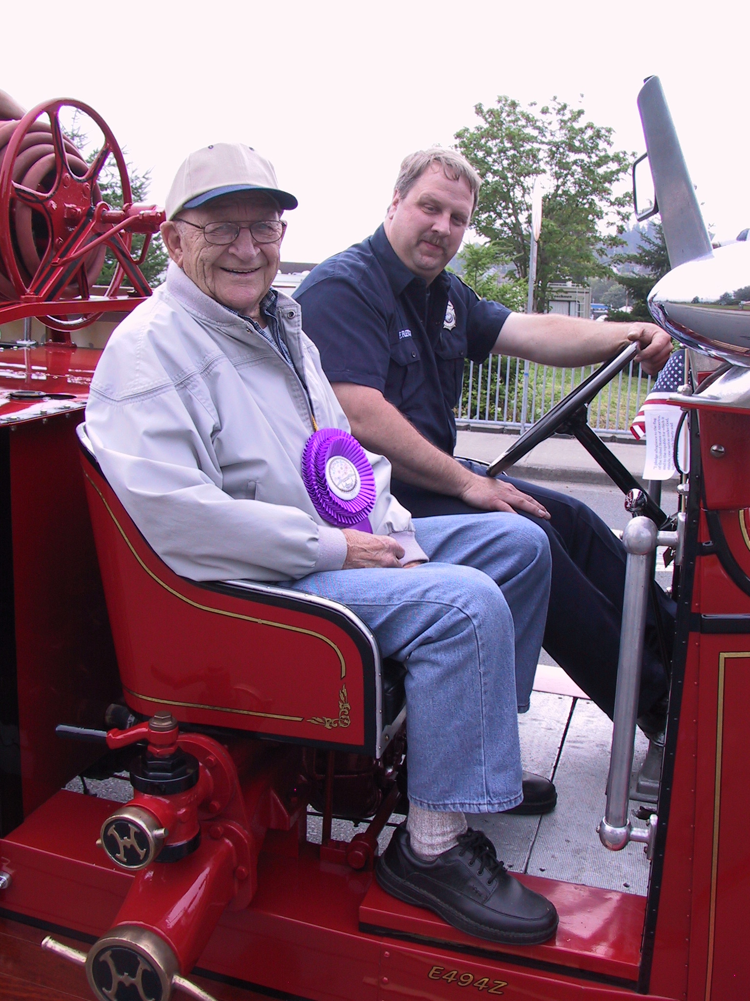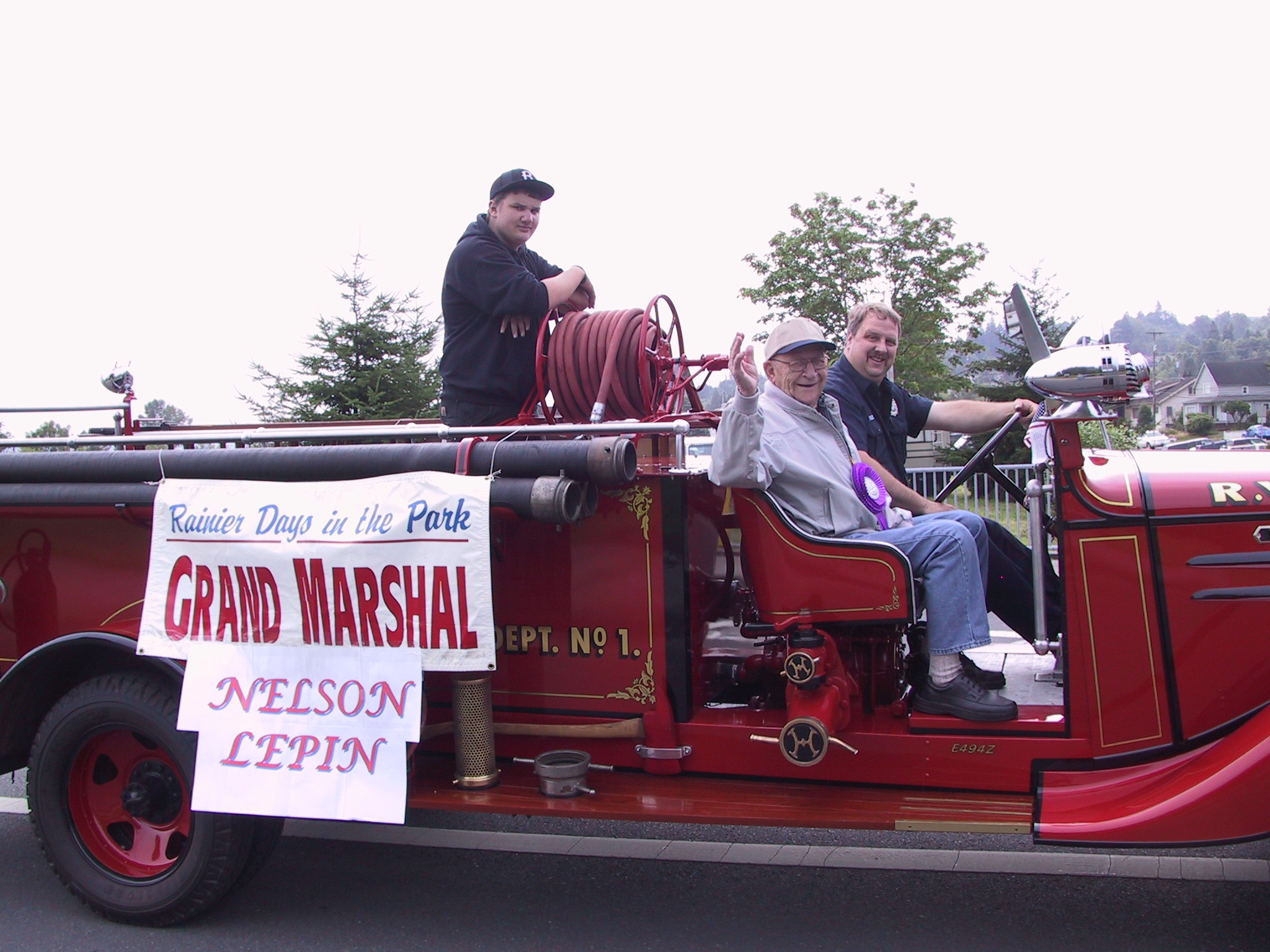 Grand Marshal Nelson Lepin riding in the old Rainier fire truck. |