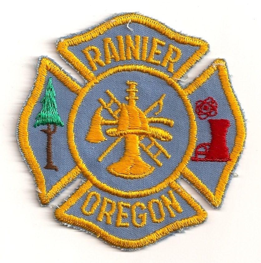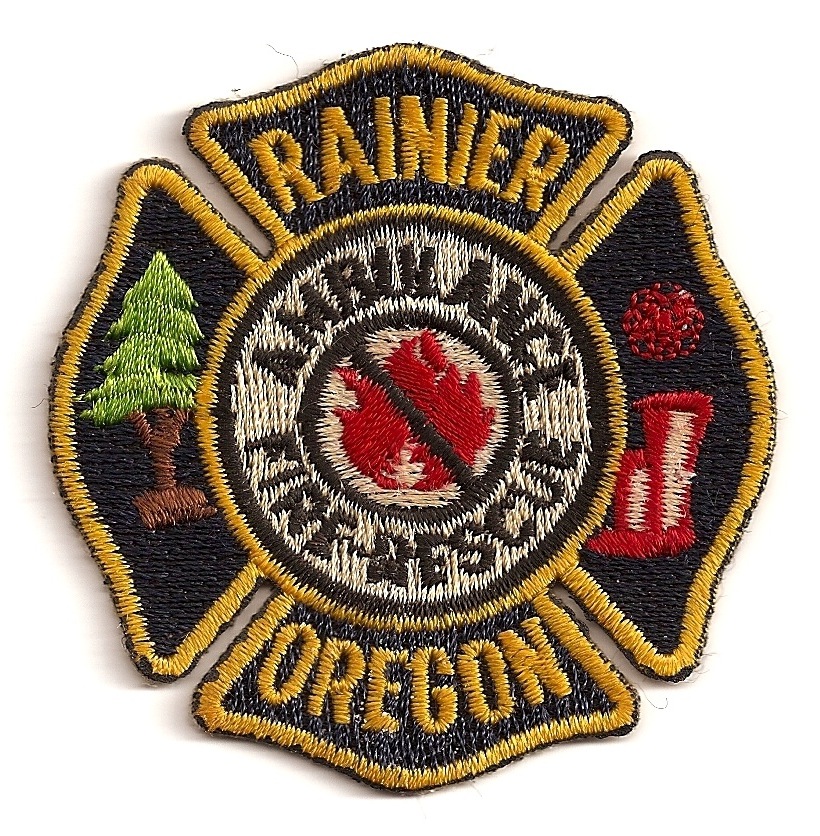 "RAINIER VOL. FIRE DEPT.," 3 3/4" high x 4" wide |