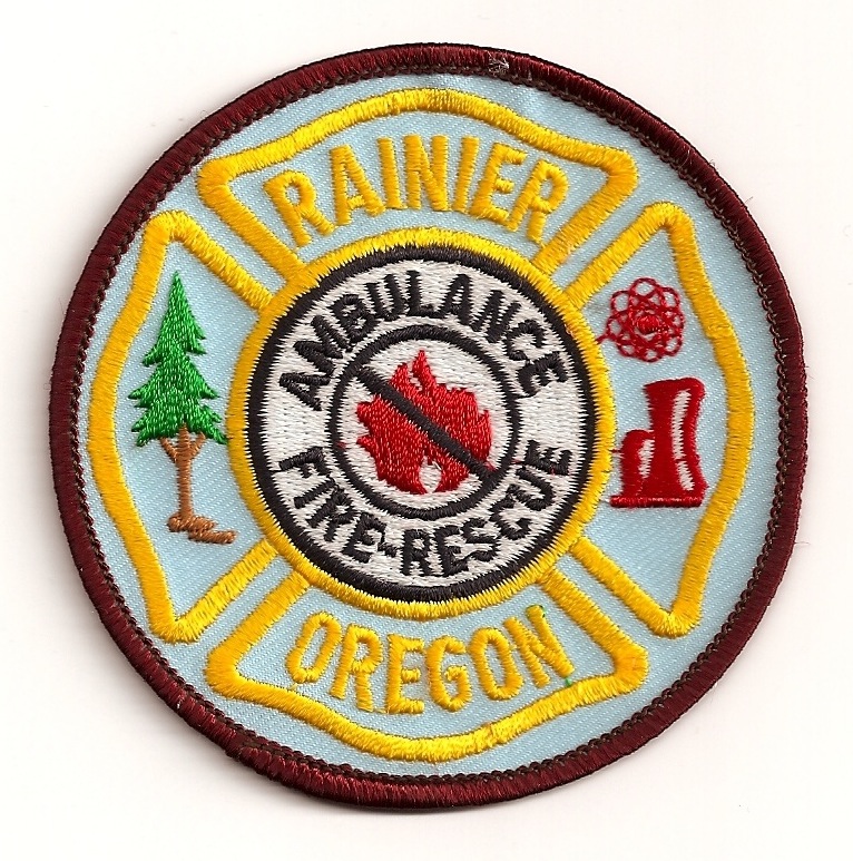 "RAINIER OREGON AMBULANCE FIRE-RESCUE" 3 7/16" diameter. |
