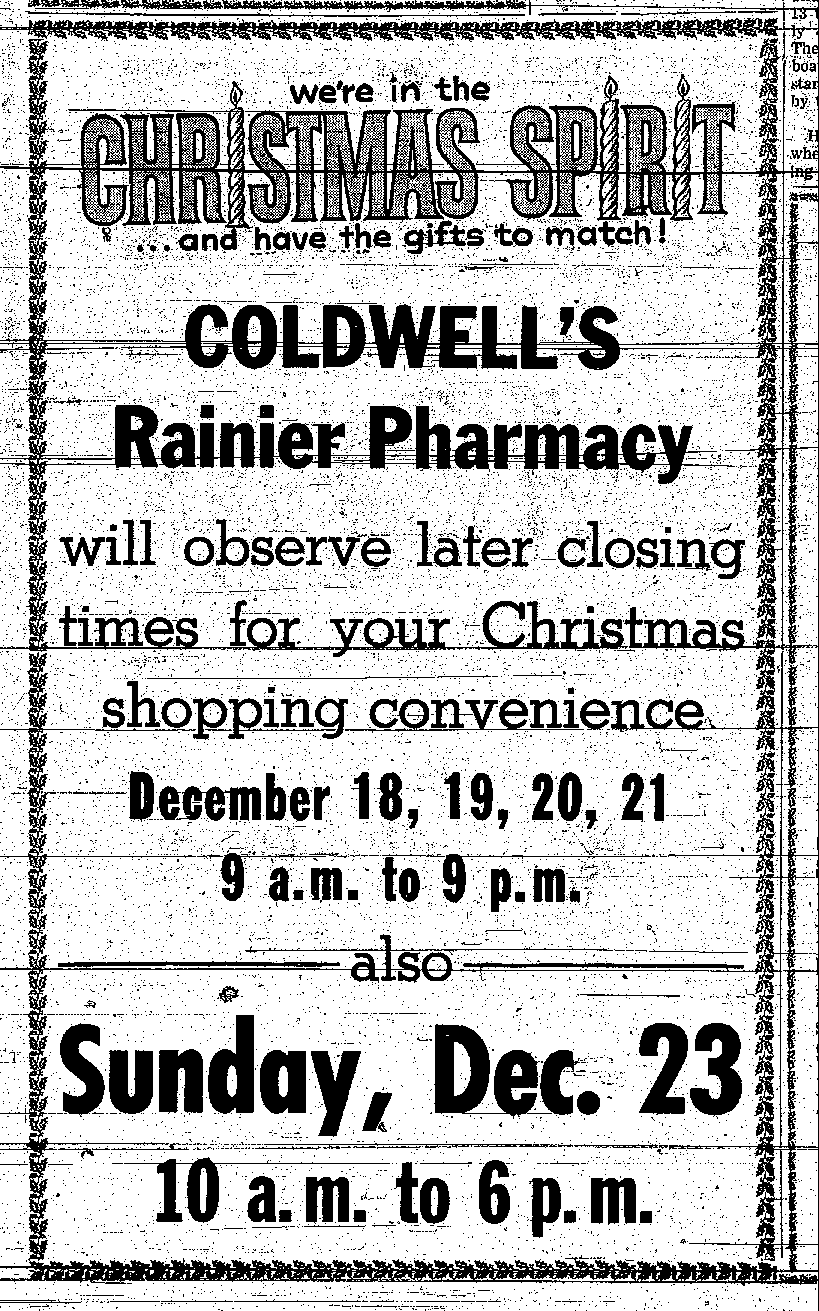 Glenn Coldwell "Coldwell's Rainier Pharmacy" 1959-1979