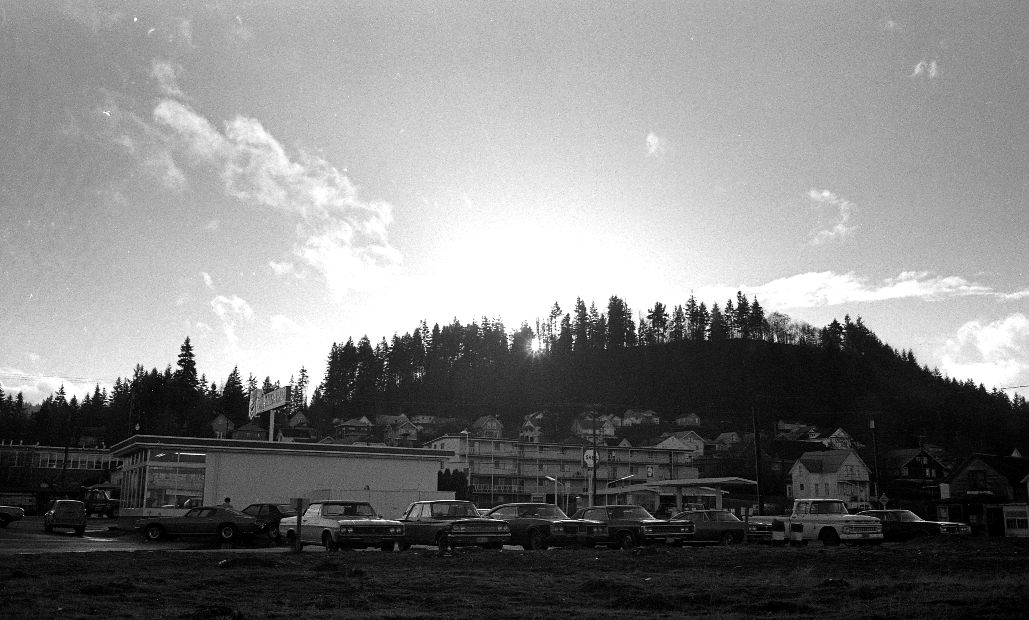 Photo looking south at the back side of the Chevron Station, late 1960s or early 1970s. Photo by Mike Clouse. |