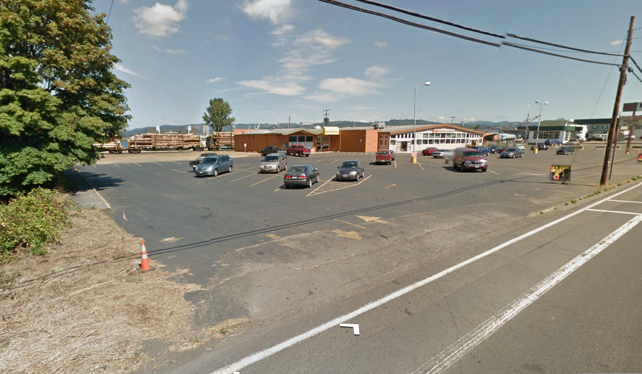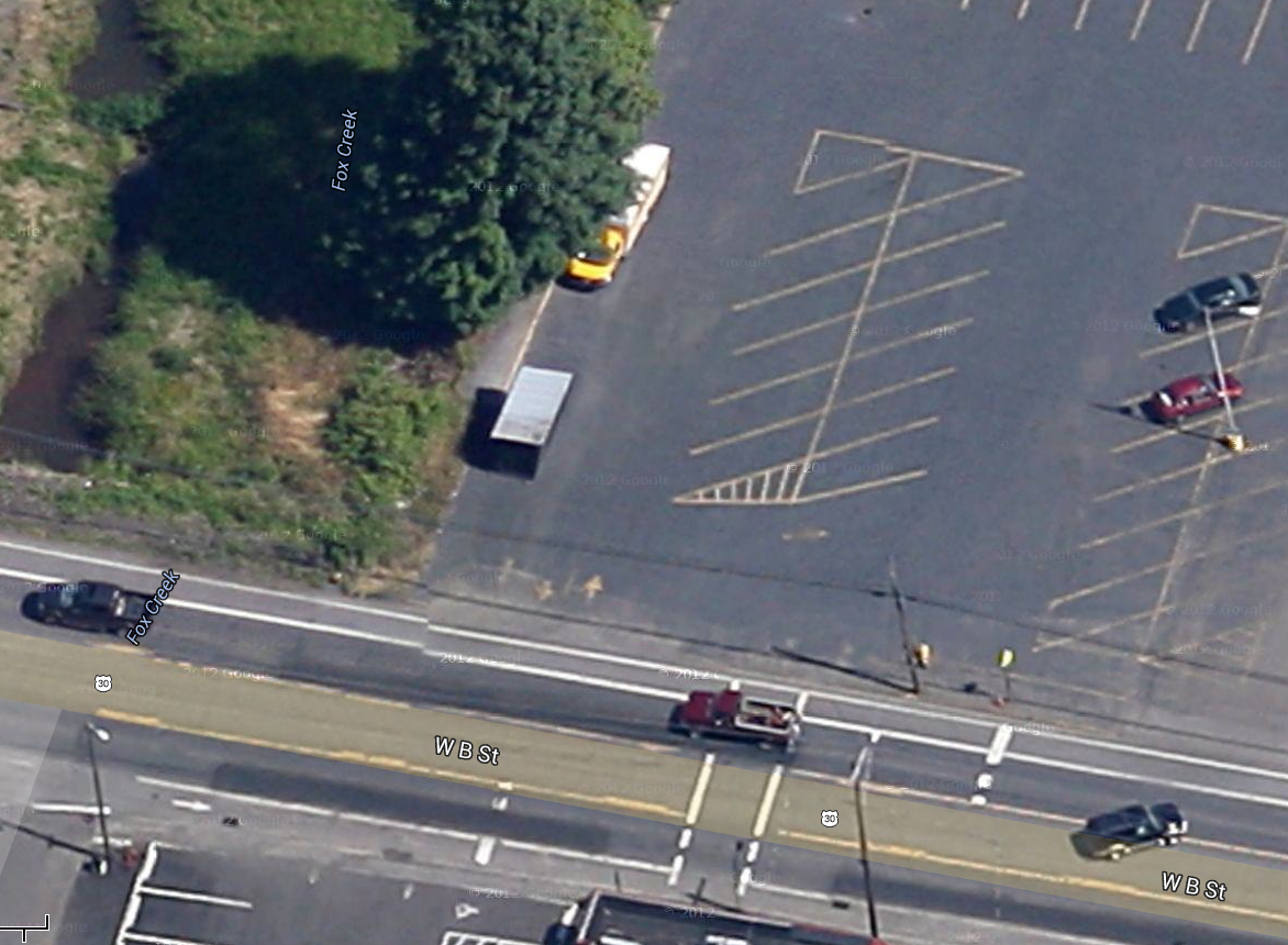 Current location of where Hop Elliot's station once stood, North side of W B St. (Hwy 30), east of Fox Creek. From Google Maps March 2015. |