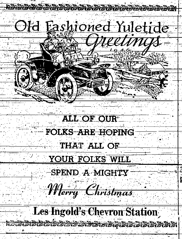 Les Ingold's Chevron Station ad. From the December 26, 1946 issue of the Rainier (Oregon) Reveiw. |