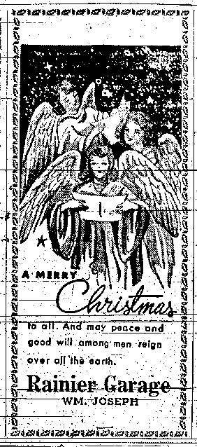 Contributed by Carl Baker April 17, 2016: I used to deliver papers to Mr. Joseph at the station for the Oregon Journal in the 1950s up until 1957 of 58. I remember those old glass cylinder pumps still there as seen in the 1930 photo when I started delivering papers there, probably around 1955. When I left town in November of 1960 I think the station was still there, but not sure about that. He seemed to be busy enough working on cars and had some customers that just came in to talk. Mr. Joseph was also the projectionist for the movie theater down next to one of the taverns along the river, or maybe next to the hotel. He had me clean the theater before and after the shows for a couple weeks when his usual help was out of town or sick. He took me upstairs before the movie and I got to watch him set up the film for the evening and then run the film. The projection room was a cramped space with bins for the reels of film to be shown, other bins for the used reels, a splicing table on rollers, two projectors, a high speed film rewinder and a large generator run by a big electric motor for running the arcs in the two projectors. When the movie was running it was quite a busy place when one reel was done and you had to switch to the second projector. The reels of film were delivered by the Greyhound bus freight across the street at Joe McKay's pharmacy and bus depot. They would arrive in the afternoon and he would pick them up and leave the ones to be shipped out. At that time, the theater only operated on Friday and Saturday nighshowed a double feature with a newsreel and a cartoon. Additional information: It has been said, but not yet verified, that the ground on which the building was standing was not stable causing structural problems. This led to the eventual closing and demolition of the building sometime in the late 1950s or early 1960s. From the "Columbia County Oregon History and Genealogy" page for "Rainier Obituaries Surname I-J": Click here to view, William F. 1897-1974 TDN (The Longview Daily News) 09-05-1974 p27 c4 William F Joseph, on "Find a Grave" page. Contact me at [email protected] for any questions � Copyright 2016 |