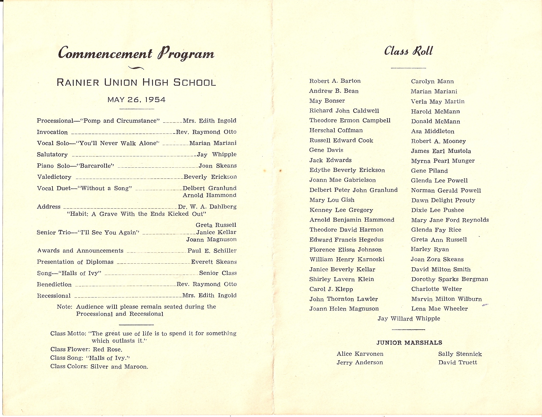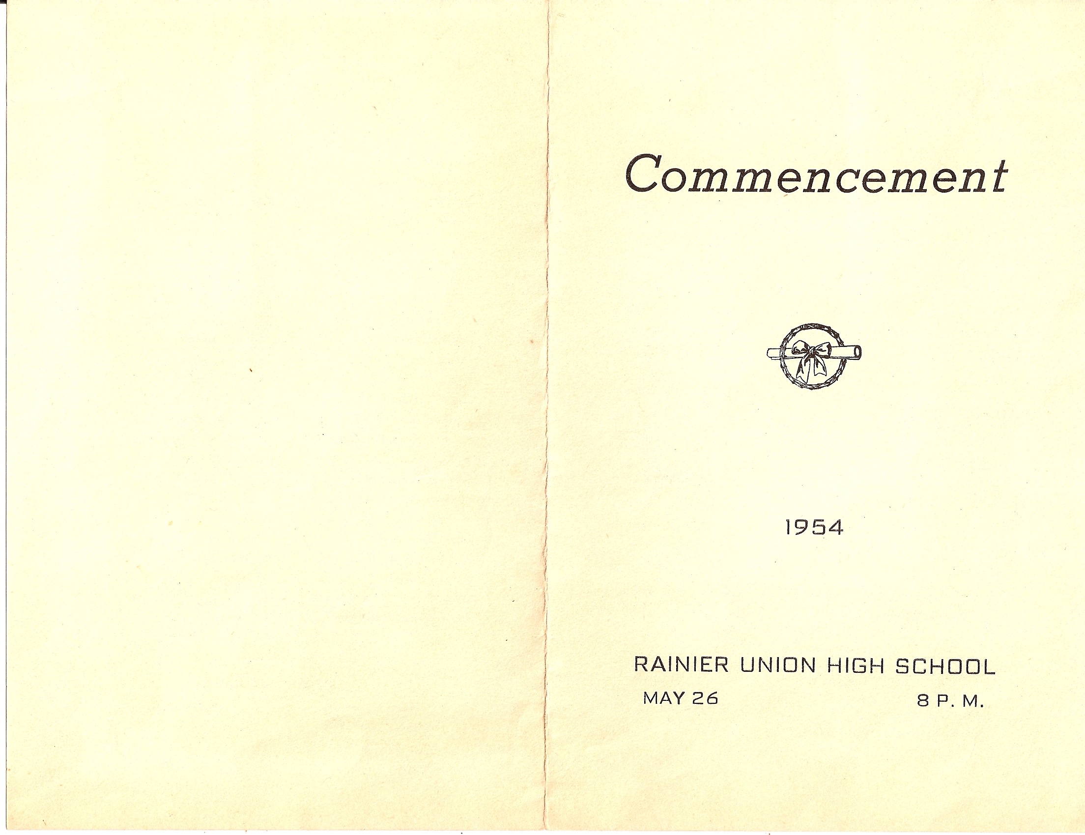 Rainier Union High School 1954 Commencement program.