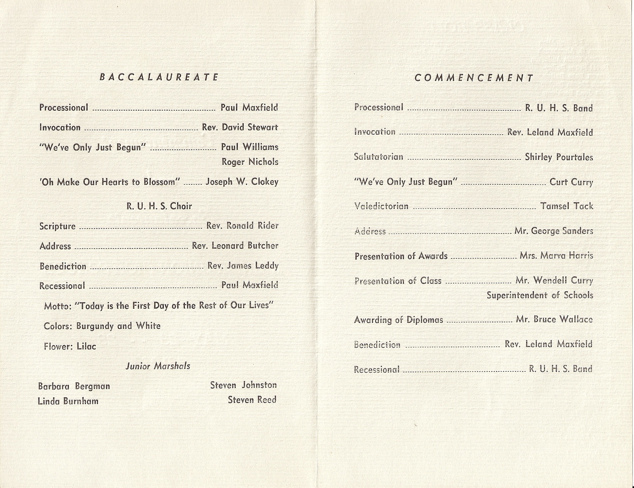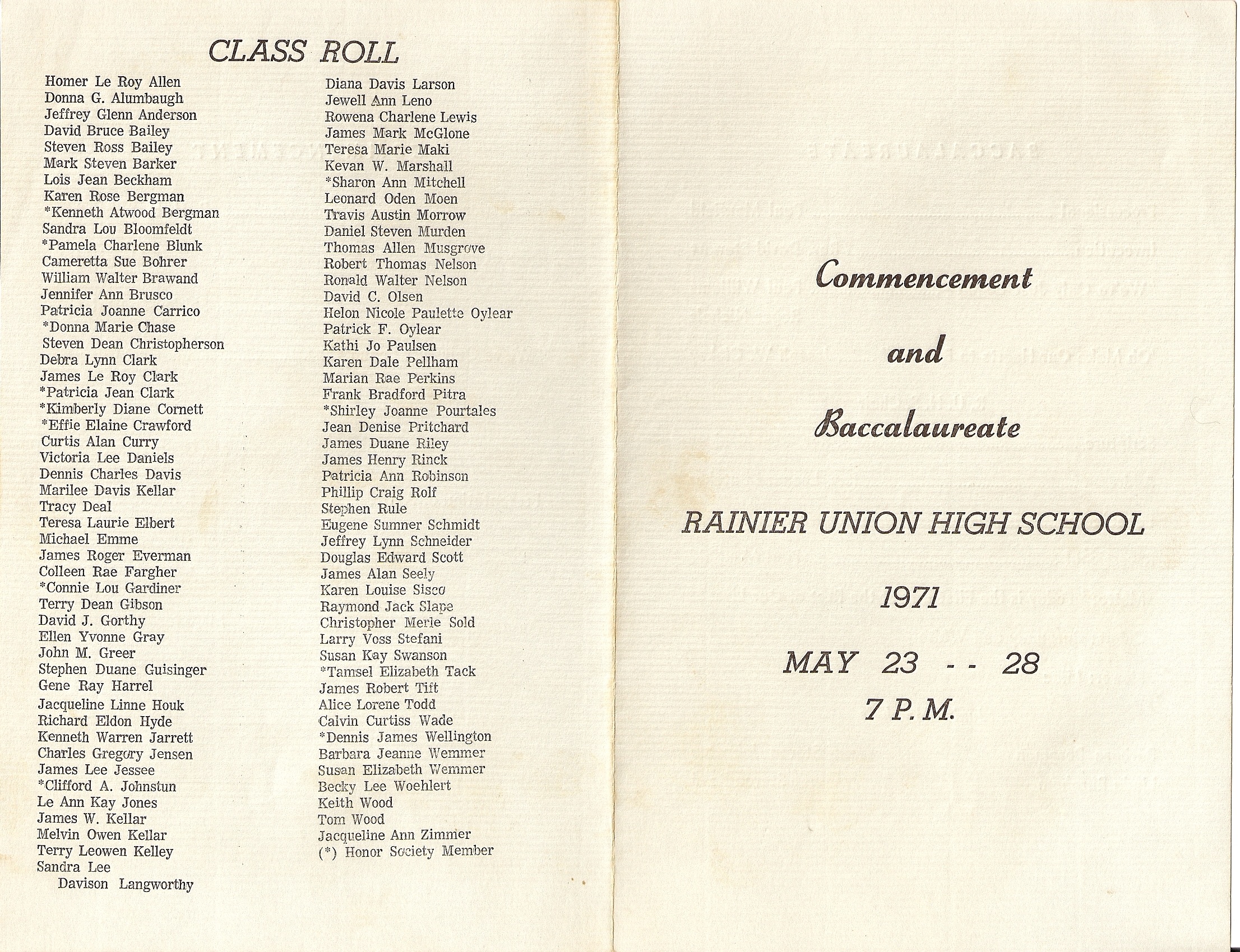 Rainier Union High School 1971 Commencement program.
