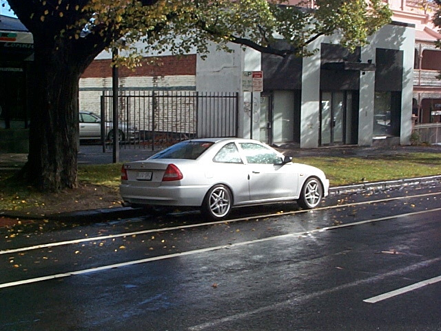 performed a single wiper conversion, bolted on 2 red tow hooks for the front and back and stuck on carbon fibre eyelids and door handles. Under the bonnet remains the standard engine looking more livelier with blue braided engine hoses,performance wise it has a port matched throttle body with a new intake mainifold, a custom pod and piping, the spent gases flow through a 2" cat back exhaust with a 4" tip. Inside the car Nathan has added an Autotechnica wheel, blue/silver pedals, Veilside gearknob and the dash piece around the stereo, ashtray and switches has been given the carbon fibre treatment. Nathans stereo consists of a 10 stacker in the boot , 100w 6" 2-way Kenwoods in the front and 120w Alpine 3-ways in the back. Nathan has big plans for the future so be sure to check out his car at this years Melbourne AutoSalon. |