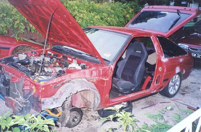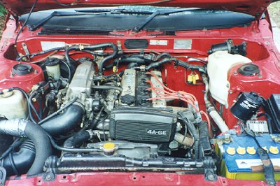 First off this little baby has a Jap import 4-AGE 1.6 EFI DOHC engine out of a Jap spec Sprinter sitting in its engine bay! Hangin off the engine are tuned length 4-2-1 racing extractors into a 2" system and a set of NGK platinium plugs. Gear changes are done through a Jap spec Sprinter closer ratio gear box with a h/d clutch this is mated to a Jap spec Sprinter GT |