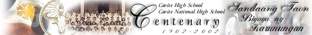 The Cavite High School-Cavite National High School, considered as one of the oldest secondary schools in the country, will celebrate the Centenary of its founding in June 2002. To mark this momentous event, the Centenary Executive Committee has been working exhaustively to ensure a successful and memorable celebration. One of the main undertakings to commemorate this event is the restoration of the now dilapidated CNHS Main Building (The Gabaldon Building).