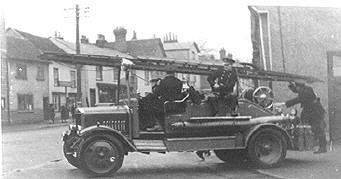 Not strictly trade, although Coggeshall's retained fire service has been manned by part-timers for over 100 years. This 1939 picture shows the first motorised fire engine on the Market Hill. Until then the appliance had been horse-drawn. |