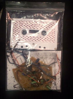packaged in plastic bag w/ smashed circuitry, wires, audio tape, metal shards, 2 inserts