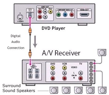 stereo plugs or the digital audio connections, if your stereo supports