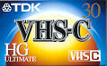 7. VHS-C - records to compact VHS cassette tape, 250 lines of resolution. Analog video. Record up to 90 min. Playback on VHS VCR with cassette adapter. |