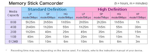 used in models like the JVC Everio, SONY DCR-SR42 (30GB), DCR-SR82 (60GB) and the memory card formats like the Sanyo
