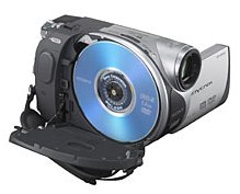 DVD camcorders record onto mini-DVD recordable discs 8 cm in diameter. (Standard DVD is 12 cm) There are record once and re-writable discs as well as double-sided and dual-layer discs. Make sure your camcorder is compatible before buying DVD media. DVD has some advantages over tape such as dynamic scene access (no rewinding) and the ability to pop into your DVD player, however, DVD camcorders use higher compression of the video than digital tape. Mini-DVD capacities are 1.4GB or 2.6GB while digital tape (mini-DV) is 15GB.