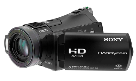The 2007 Sony Handycam HDR-CX7 model is the worlds smallest and lightest AVCHD high-definition camcorder. It can record nearly three hours of full HD 1080 video on an 8 GB Memory Stick PRO Duo media card (LP mode).