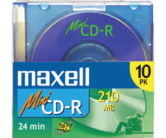 MAXELL MINI-CDR-10MX 3" Write-Once Recordable CDs 10 pack 210MB, 24 minute capacity