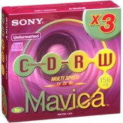 Sony 3 Pack 8 cm CD Rewriteable - 3MCRW-156A 3 CD-RW Media. Save up to 1,300 images at 640 x 480 resolution (VGA) or 237 images at 1600 x 1200 resolution (UXGA). Captures up to 24 minutes recording time at 320 x 240 resolution (presentation mode). Get 90 minutes of recording time of Video Mail mode at 160 x 112 resolution. - CD-RW Media Price: $19.95 Retail - $14.95 Discount ( $5.00 per disc ) |