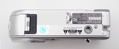 The DSC-P72 has a flat bottom panel, which holds the metal tripod