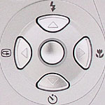 controls the Macro mode (close-up). The left arrow calls up a quick review of