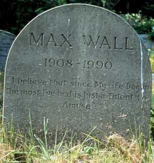 Max Wall died, following a fall at Simpson's in the Strand, on the 21st May 1990 and generations mourned the passing of a great clown. His headstone in Highgate Cemetery quotes Noel Coward and