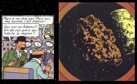 | L'astéroïde "Adonis", vu par Hergé (Tintin, On a marché sur la lune, d'Hergé) |