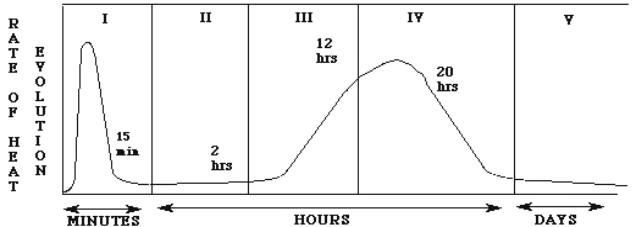Around 30% of the total heat is generated within the first day. And around 50%