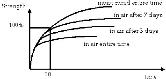 rate of strength gain is directly related to the amount of moist curing. The