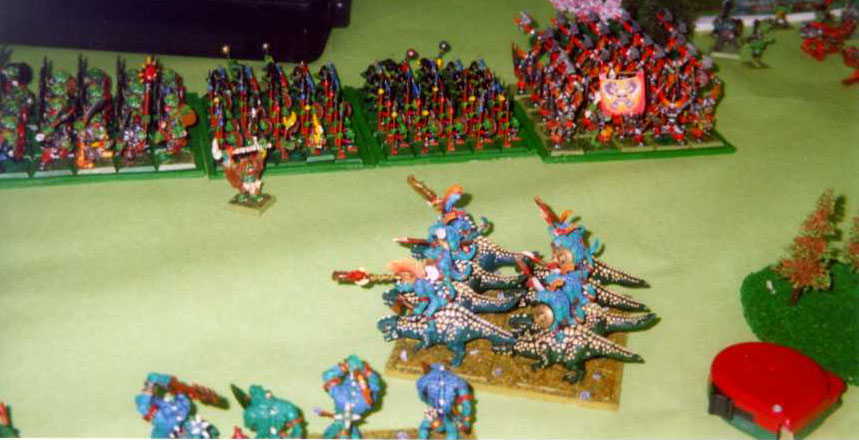 Sobresalía el duelo entre Toni Martínez (Enanos del Caos - Campeón de España) contra Juan José Martínez (Bretonia - 6º de España); nuestro Paladín vendió cara su derrota, pero Toni es mucho Toni... Tampoco se quedaba atrás el combate entre Mario Garrote (Hombres Lagarto), con 7 Jinetes Saurio y 4 Kroxíngores, y Enrique Ruiz (Orcos) con nada menos que 25 Orcos Negroz, de la edición anterior... ¡Piños a mansalva, asegurados!